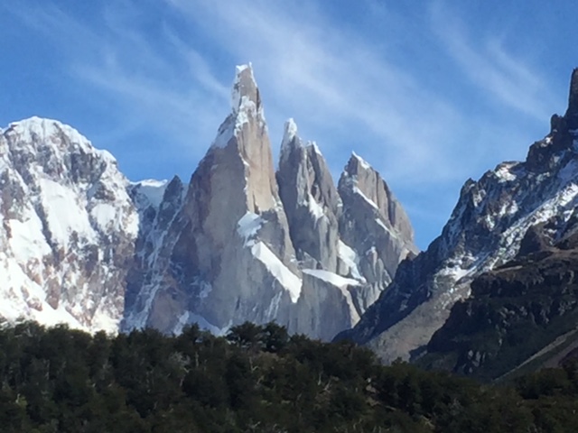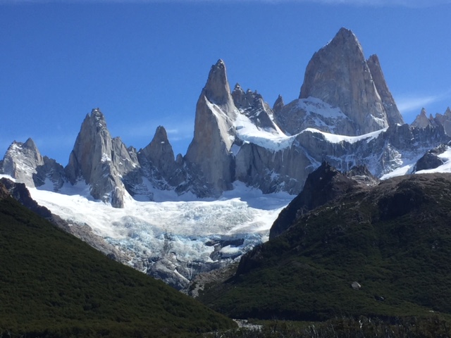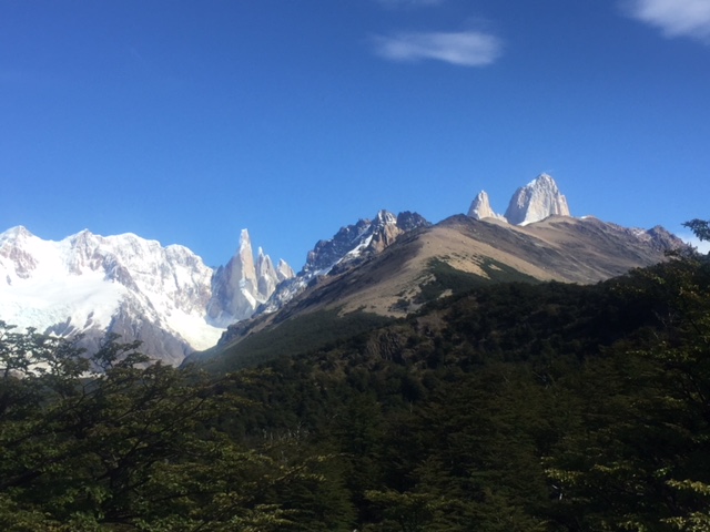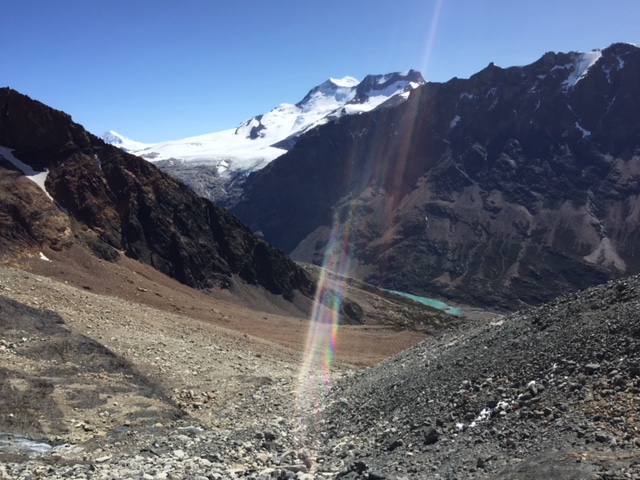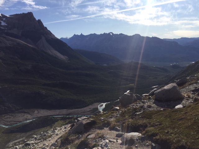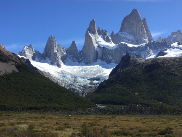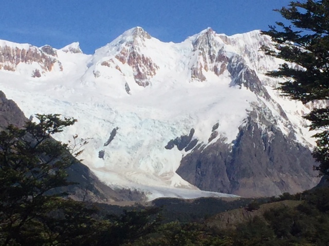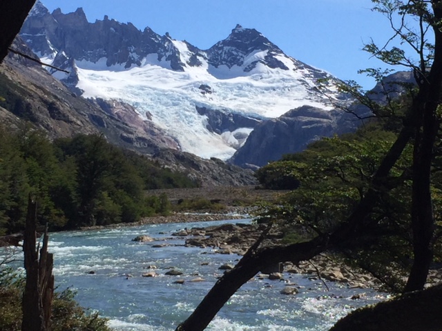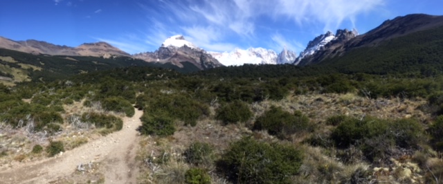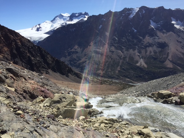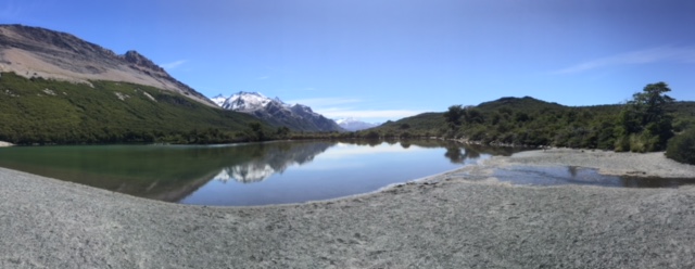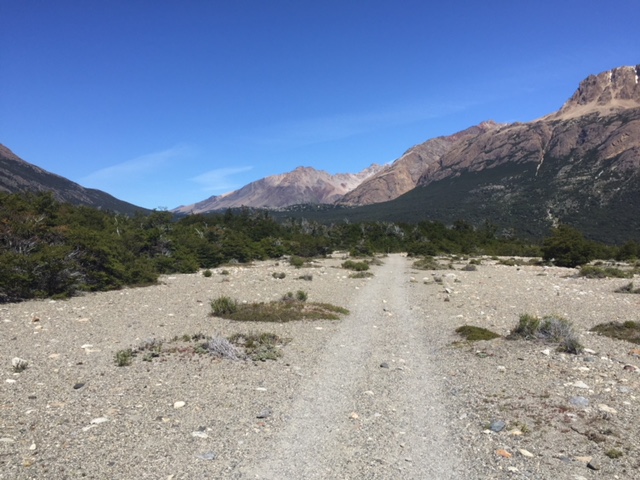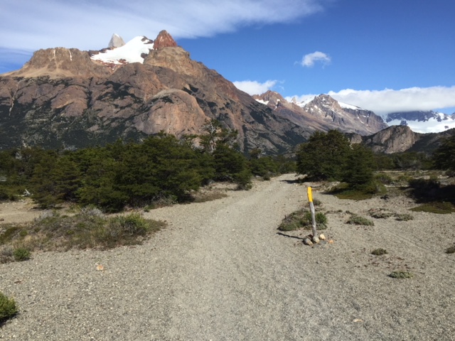 Nachdem ich meinen Belastungstest bei der Laguna Toro erfolgreich bestanden hatte, wollte ich natürlich in dieser atemberaubend schönen Gegend noch auf eine weitere und etwas längere Tour. Das spezielle hier in El Chaltén ist, dass man von fast überall die beiden berühmten und spektakulären Berge Cerro Torre (das Eis am Stiel) und Fitz Roy (das Eis im Becher) bestaunen kann – falls das Wetter mitspielt. Die beiden Gipfel thronen über dem Dorf und ich bin sicher ihr werdet diese auf meinen Fotos aufgrund dieser Beschreibung problemlos erkennen. Mein Zentralprozessor hat bei der Mustererkennung jedenfalls sofort auf Raketenglace geschlossen als ich bei brütender Hitze mit 20 kg auf dem Buckel vor dem Cerro Torre vorbei gewandert bin…
