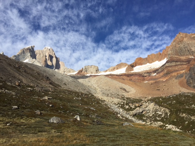 Diese Viertragestour war eine Schleife und ging von El Chaltén via Laguna Torre, Laguna de los Tres, El Pilar, Piedras del Fraile, Paso del Cuadrado und nochmals Piedras del Fraile wieder zurück nach El Chaltén über insgesamt 64 km und 2550 Höhenmeter (aufwärts). Auf dem Papier also eine eher gemütliche Tour aber bei der Hitze und mit dem Gewicht des Rucksacks hat‘s mir dann trotzdem gereicht.